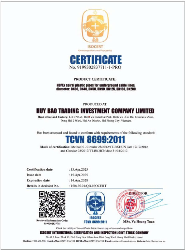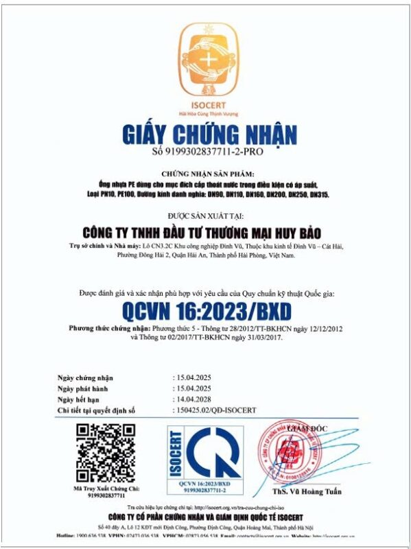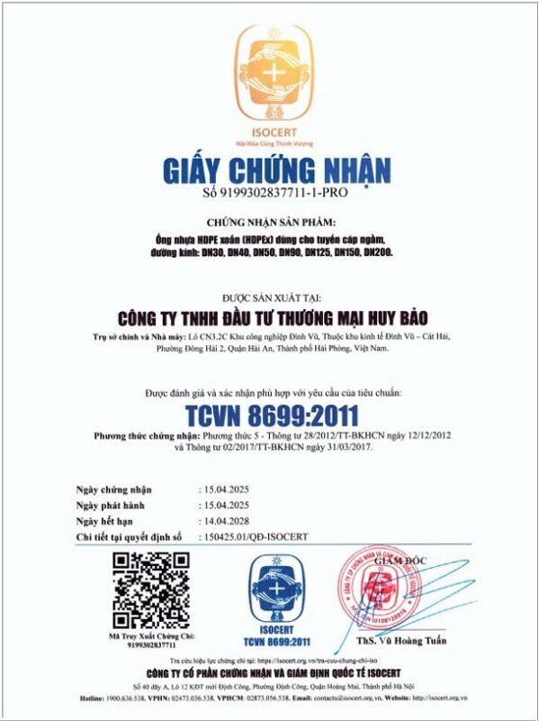 Huy Bảo định hướng trở thành doanh nghiệp hàng đầu trong lĩnh vực ống nhựa HDPE tại Việt Nam, từng bước khẳng định năng lực cạnh tranh trong khu vực và quốc tế.